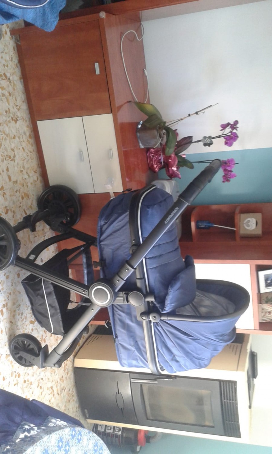 Con telaio in alluminio, sul quale si può facilmente agganciare il seggiolino auto ad ovetto omologato per il gruppo 0+. Dotato di seduta reversibile fronte strada e fronte mamma, si trasforma in navicella morbida, adatta per i primi mesi.