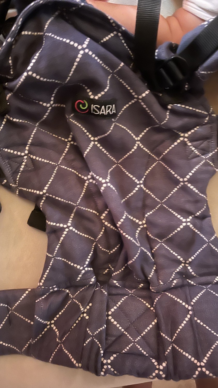 Marsupio ergonomico realizzato in cotone 100% biologico avvolgente, comodo e pratico da utilizzare.