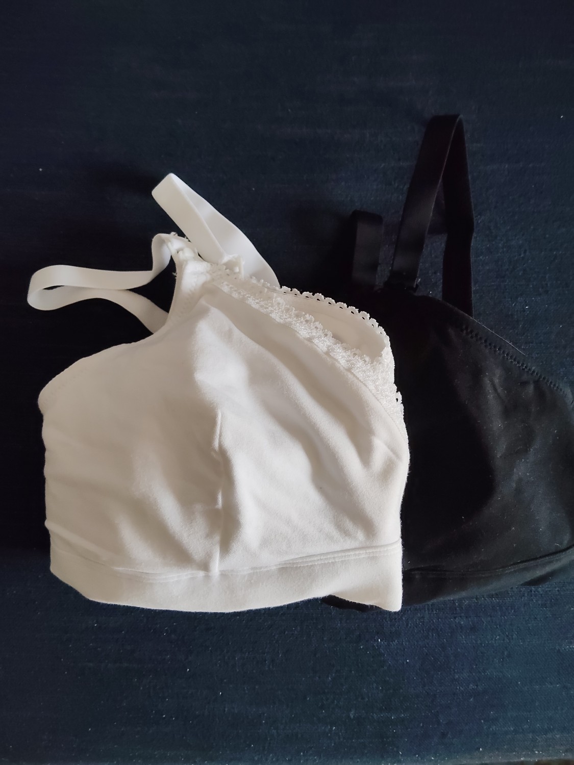 Ho preso il set composto da due reggiseni per l'allattamento formato da uno bianco e uno nero con gancetti sgancia coppetta, ottimo cotone, elastico quanto basta e il seno e ben sostenuto. Migliorerei solo le fantasie.
