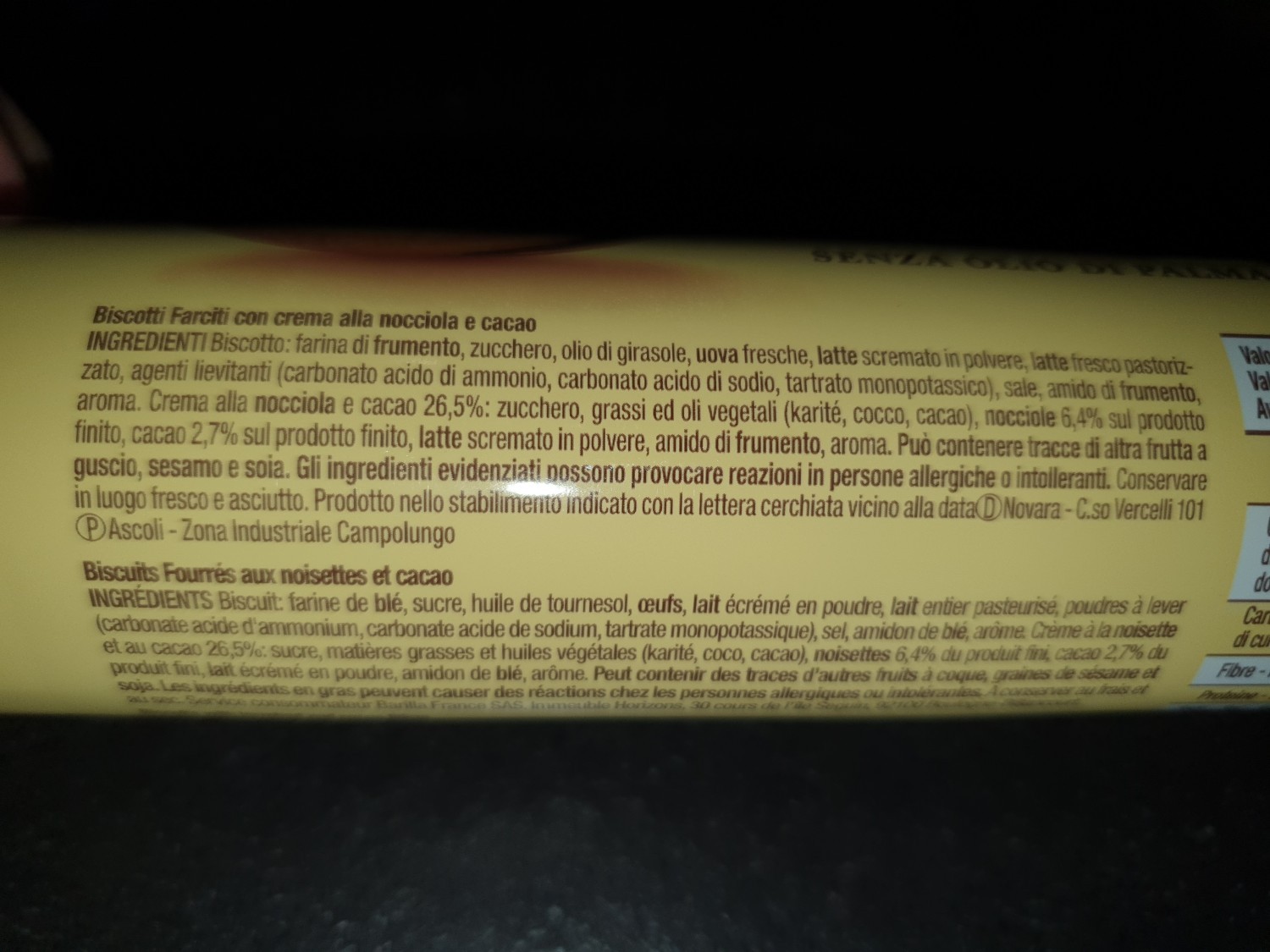 Questi biscotti sono fenomenali . I bimbi li amano ma anche noi “grandi “. All’interno sono colmi di crema alle nocciole e cacao . Perfetti per colazione o per merenda , inzuppati nel latte sono molto golosi . Assolutamente da comprare e provare , li straconsiglio !