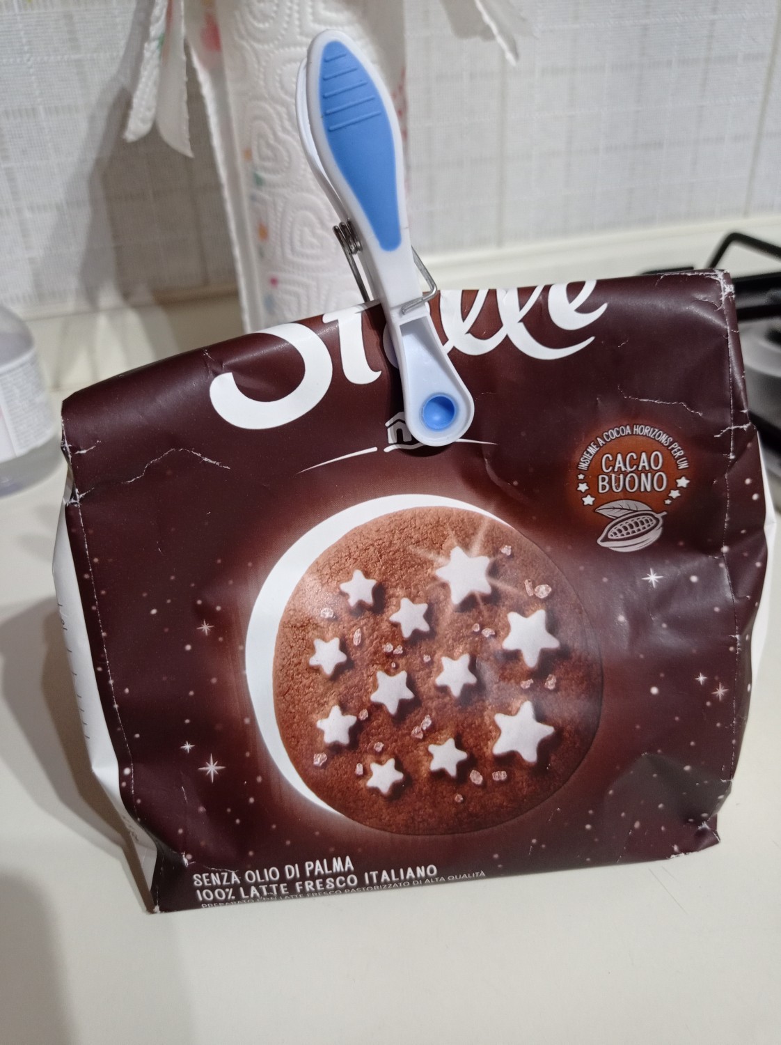 Non sono tra i miei preferiti dei biscotti del Mulino Bianco, ma comunque ne apprezzo sia il sapore al cacao e nocciole, che l'inconfondibile formato rotondo con stelline di zucchero sopra.Lo considero un biscotto molto adatto all'inzuppo nel latte che ne viene arricchito proprio dal cacao del biscotto per cui l'insieme diventa molto piacevole.Buona come sempre la selezione degli ingredienti fatta dal brand molto attento alla qualità.