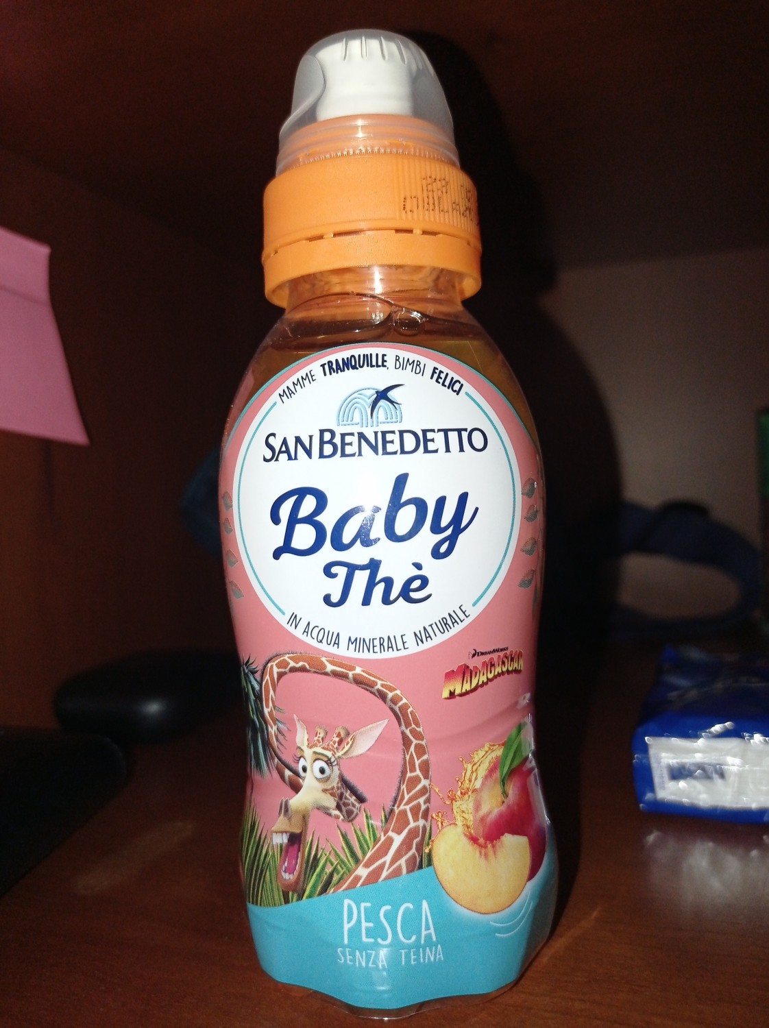 Bevanda analcolica di thè deteinato alla pesca, pensata per i più piccoli: il gusto del thè in acqua minerale, senza teina, con fruttosio e zucchero di canna. In pratiche bottigliette da 25 cl, con l’innovativo tappo Pull&Push per bere senza sporcarsi, decorate con le immagini di 44 Gatti. Senza coloranti, conservanti e glutine, imbottigliata in ambiente protetto.