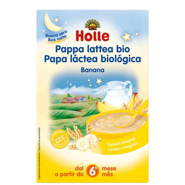 Una pappa di rapida preparazione, pronta in pochi istanti aggiungendo semplicemente acqua, particolarmente adatta la sera è ideale per abituarsi a mangiare con il cucchiaio e ai nuovi alimenti, indicata dai 6 mesi in poi. Contiene: farina di grano integrale, latte e tante vitamine ed è arricchita da un piacevole gusto di banana, tutti ingredienti provenienti da agricoltura biologica e biodinamica.