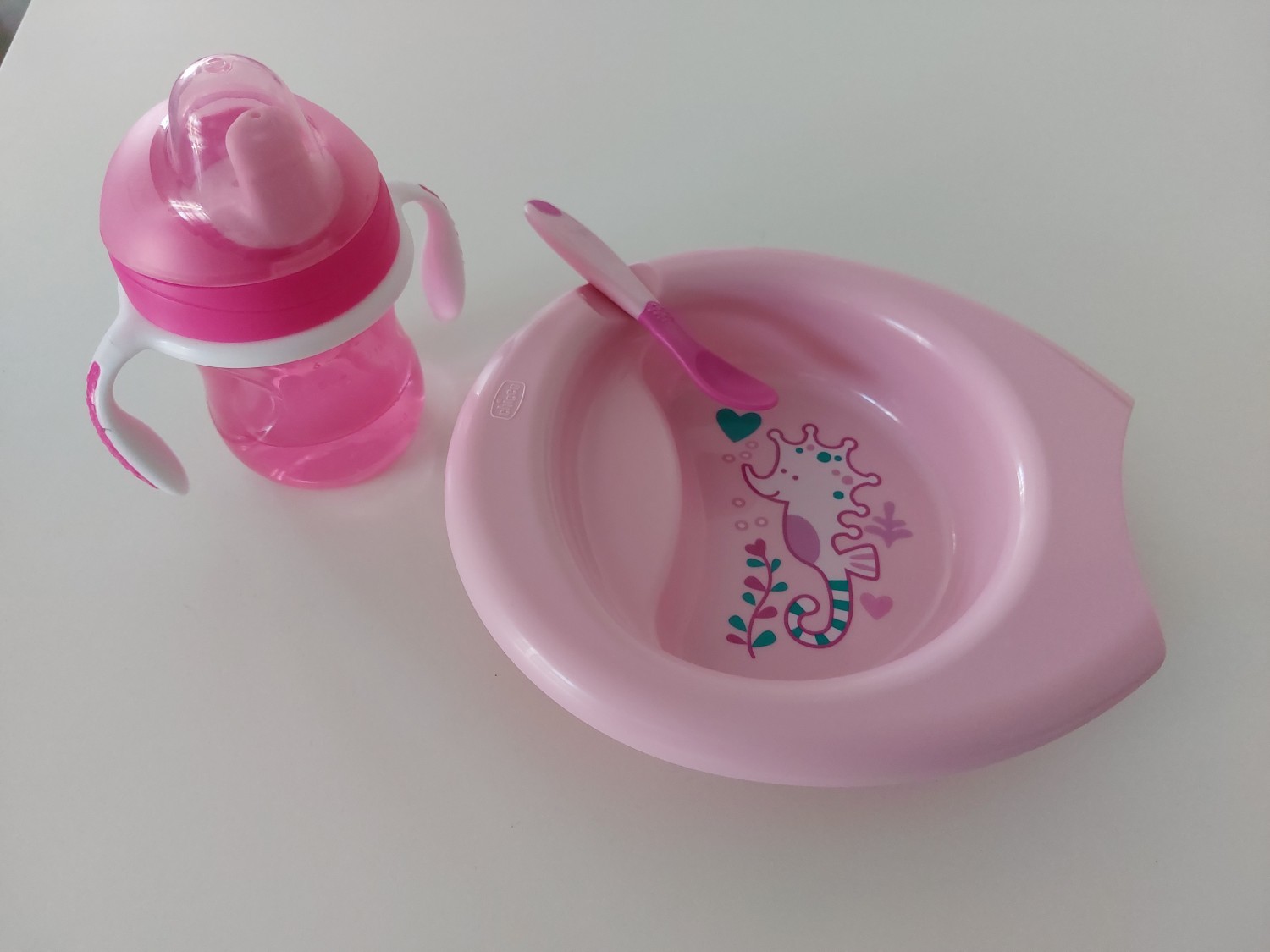 Set pappa che comprende 1 piatto Pappacaldo, 1 piatto Pappafacile con serbatoio per mantenere la pappa in caldo più a lungo, 1 Training Cup per sviluppare le capacità di deglutire del bambino e 1 Promo Cucchiaio, studiato per le gengive delicate del bambino. Ideale per iniziare lo svezzamento.