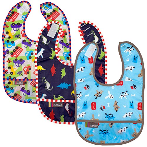 Il bavaglino impermeabile Kushies è un "must have" per ogni genitore e bambino alle prese con le prime pappe! Realizzato in tessuto leggero impermeabile, permette al bambino di non accorgersi nemmeno di averlo addosso, è facile da pulire e immediatamente riutilizzabile. Si chiude con velcro ed è fornito di tasca raccogli-briciole. Disponibile in colori assortiti e fantasie unisex 100% nylon (senza bisfenolo, ftalati, piombo e PVC). Lavabile in lavatrice a 40°C. Età consigliata: dai 12 mesi in su. Dimensioni: 29 x 43 cm. Made in Canada.