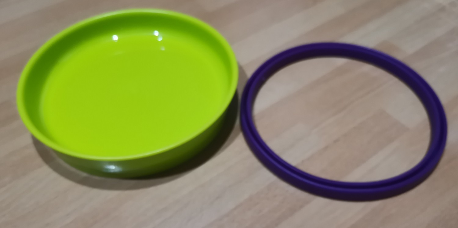 Piattino che non mi ha fatto impazzire. Sicuramente alle mamme non bastano mai i piattini, le ciotoline e i contenitori pertanto lo trovo più utile per una merenda/spuntino con frutta piuttosto che come piatto per secondo e contorno, a mio avviso troppo piccolo. Per il resto i colori e la qualità sono impeccabili! Oltre l'anello in silicone che evita lo scivolamento del piattino