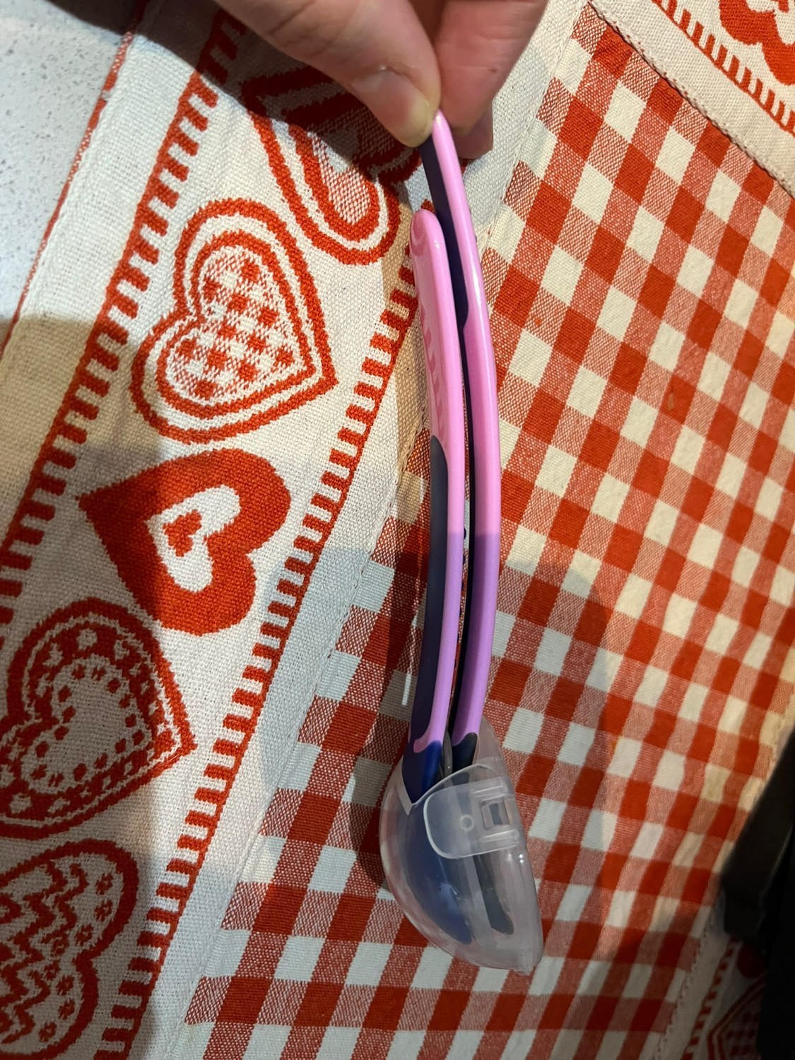 Cucchiai con punta sensibile al calore, cambiano colore se la pappa è troppo calda. Con manico antiscivolo. Sono venduti insieme per imparare a mangiare in 2 fasi: prima il cucchiaio lungo e sottile per raggiungere facilmente il fondo dei vasetti da parte della mamma, che può essere afferrato assieme al bambino; poi il cucchiaio corto e largo adatto alle manine dei bambini, ideale per essere tenuto in autonomia.