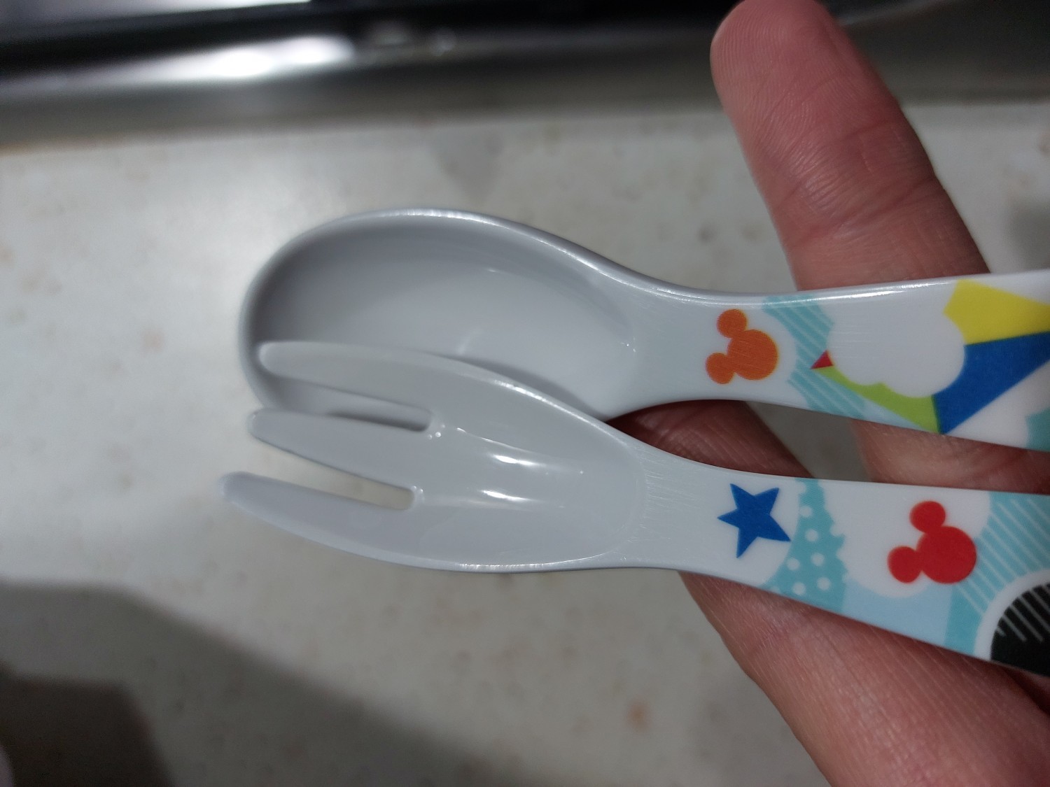 Set di posate per iniziare a fare pratica mangiando da soli leggere e funzionali. Disegni divertenti, sempre presenti in tavola.
