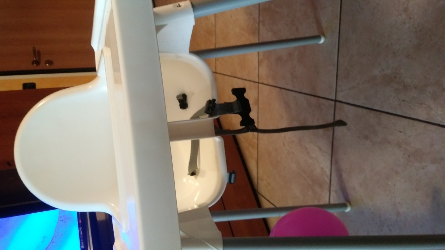 È molto scomodo perché si sbatte sempre nella gamba del seggiolone, plastica poca resistente
