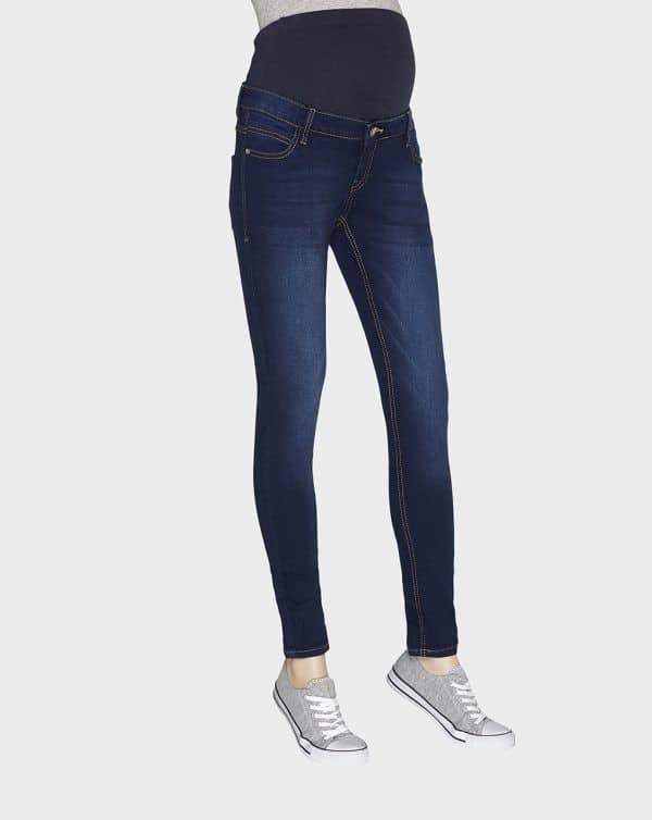 Jeans premaman super stretch con larga fascia in maglia per sostenere la pancia.