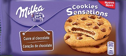 Cookies in formato extra large, con ripieno di crema di cioccolato al latte Milka. Ingredienti: zucchero, farina di frumento, grasso del latte, olio di girasole, olio di...