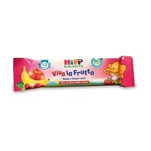Barretta biologica alla frutta per bambini, ideale come snack fuori casa. Contiene mela e frutti rossi, senza zuccheri aggiunti. Da 12 mesi.