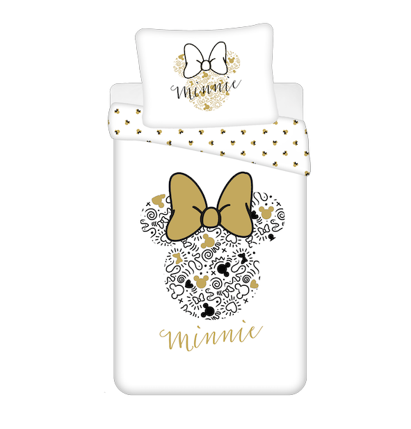 Completo per letto singolo con stampa Minnie sui toni dell'oro. Realizzato in 100% cotone di alta qualità, è composto da sacca e federa, con chiusura a cerniera. ...