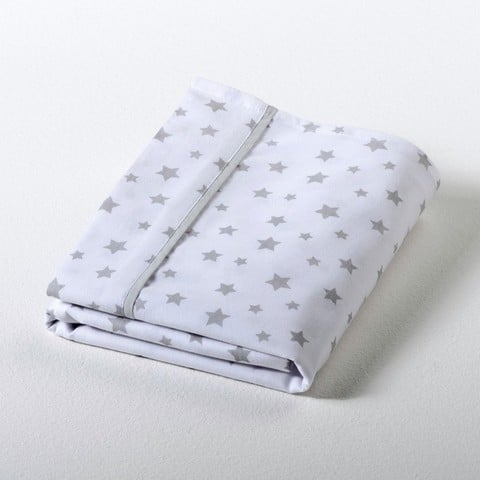 Lenzuolo realizzato in puro cotone 57 fili/cm² con un'allegra fantasia a stelle grigie, su fondo bianco. Lavabile in lavatrice a 60°, disponibile in due misure: 80x110 cm, 120x180 cm....