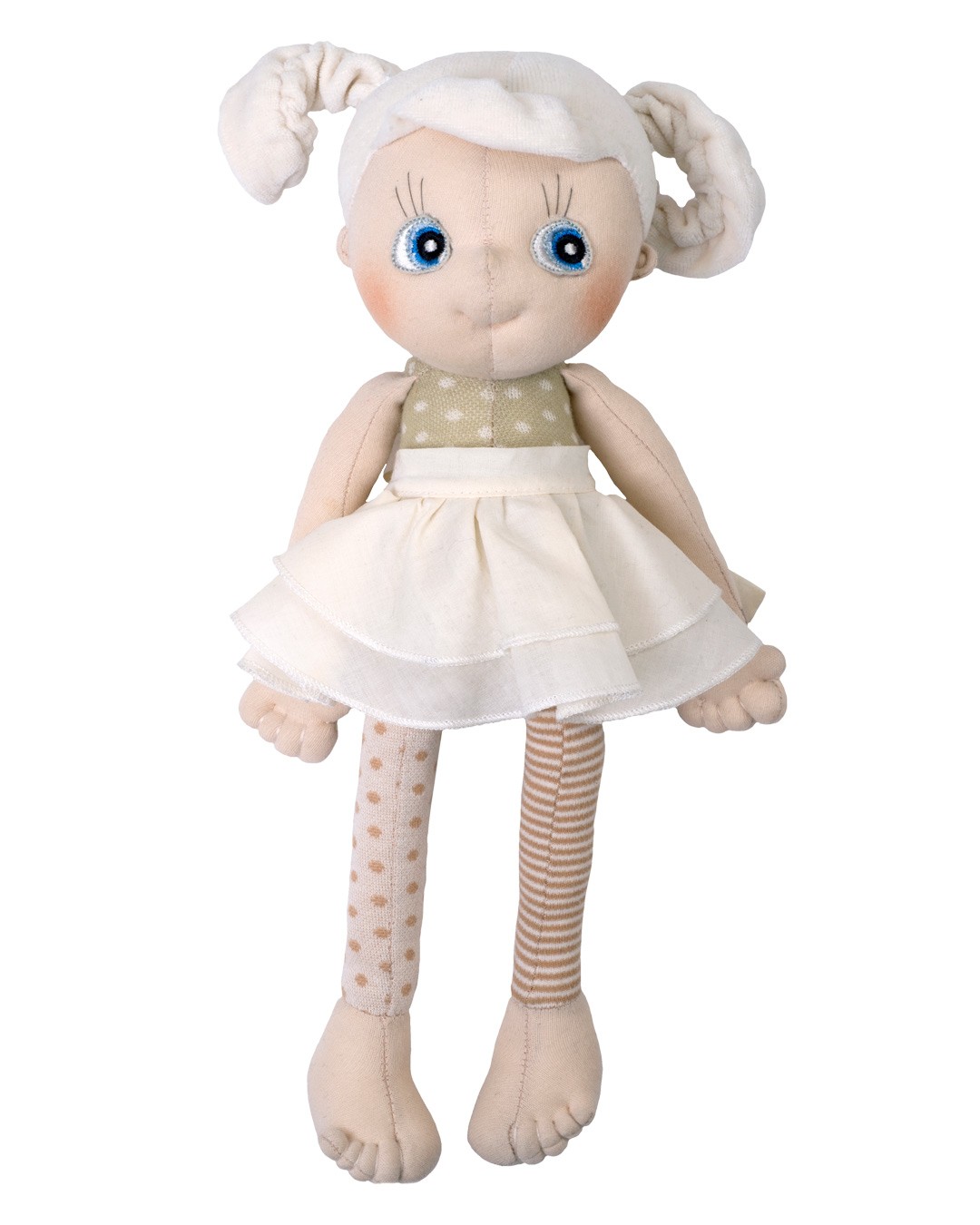 Bambola morbida fatta a mano, realizzata interamente in cotone biologico 100% certificato, con imbottitura in fibra di poliestere Global Recycled Standard (GRS). Con dettagli realistici, ha gli occhi ricamati....