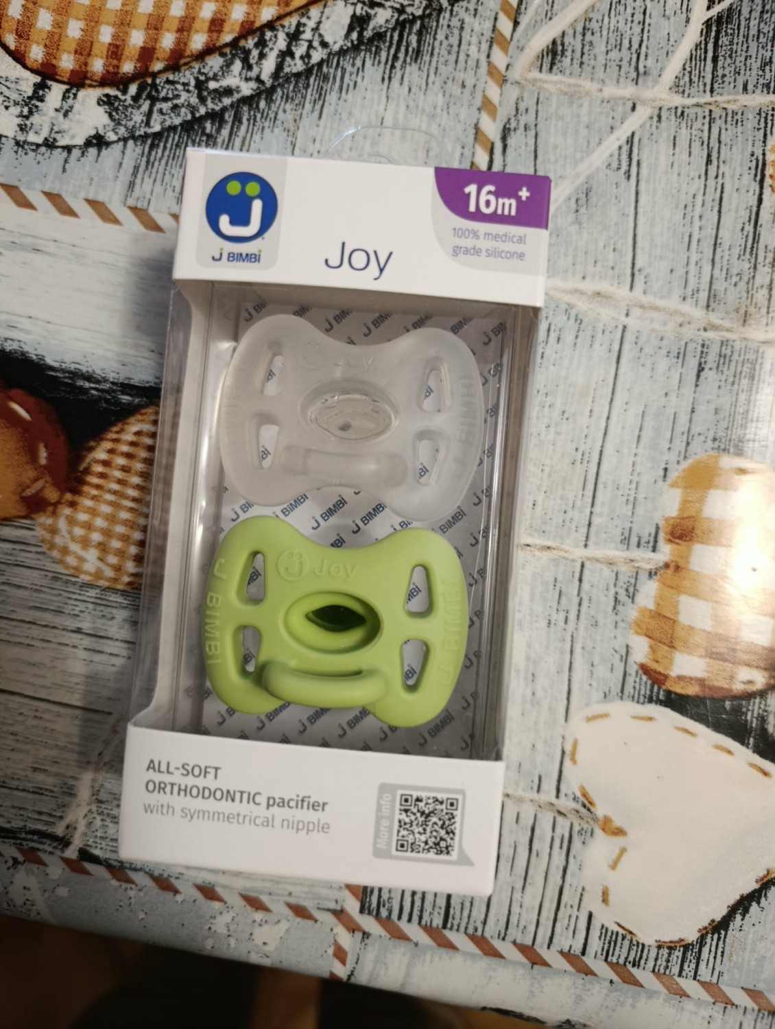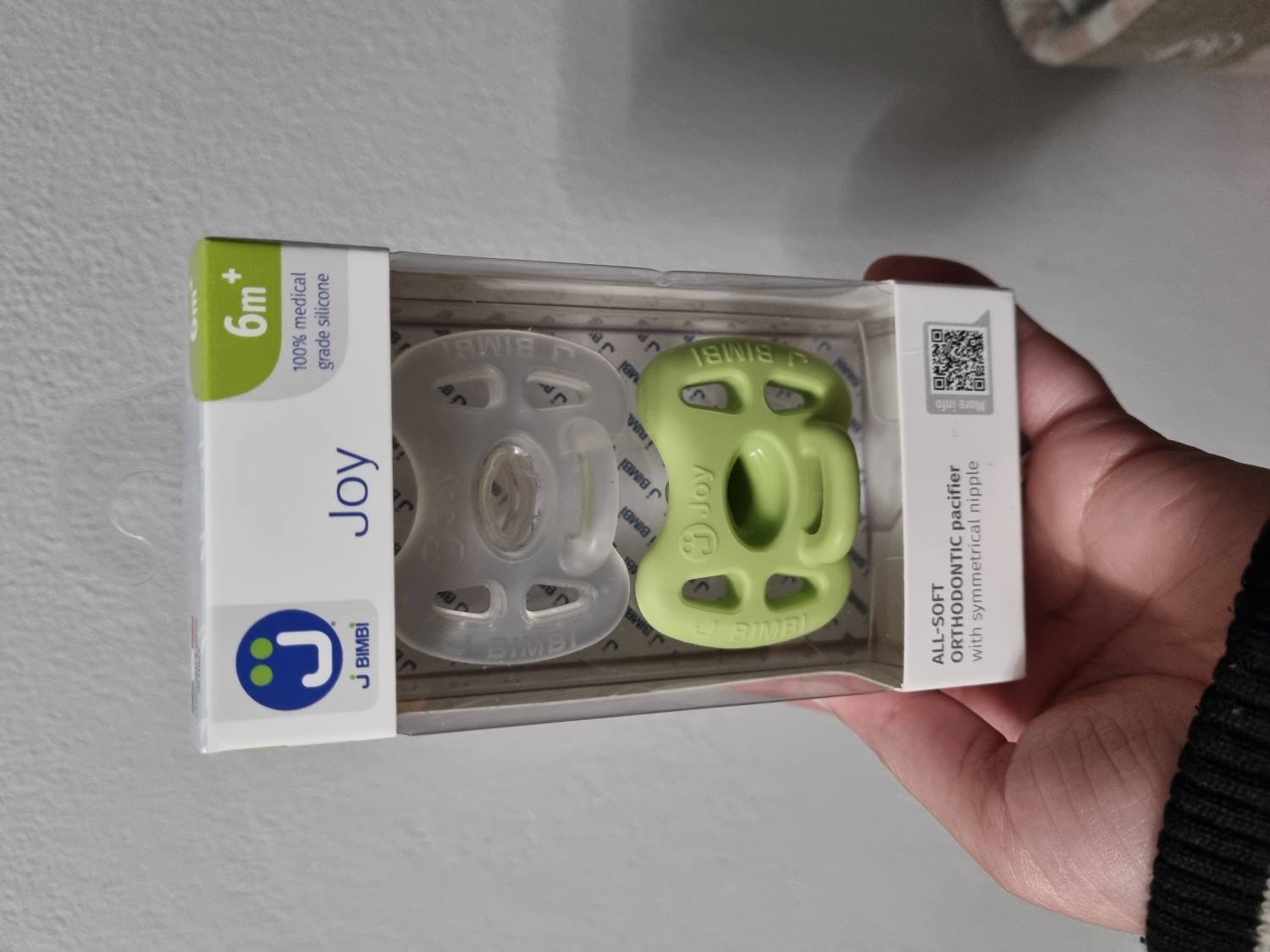 Il Succhietto Joy di J Bimbi è un succhietto ortodontico in silicone 100% medicale, morbido ed elastico. Realizzato in un unico pezzo, ha una tettarella simmetrica a goccia che si adatta in ogni posizione alla bocca del bambino e base sottile che consente una corretta chiusura della bocca, ma robusta per resistere ai dentini, se già spuntati. Accessibile in ogni sua parte per una completa e facile sterilizzazione, è dotato di scudo ergonomico con ampi fori di aerazione e microsfere massaggianti che assicurano una pelle asciutta e sana.