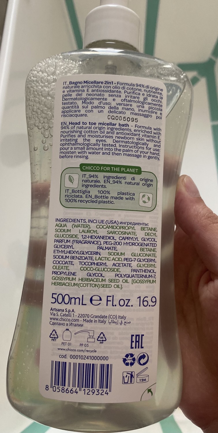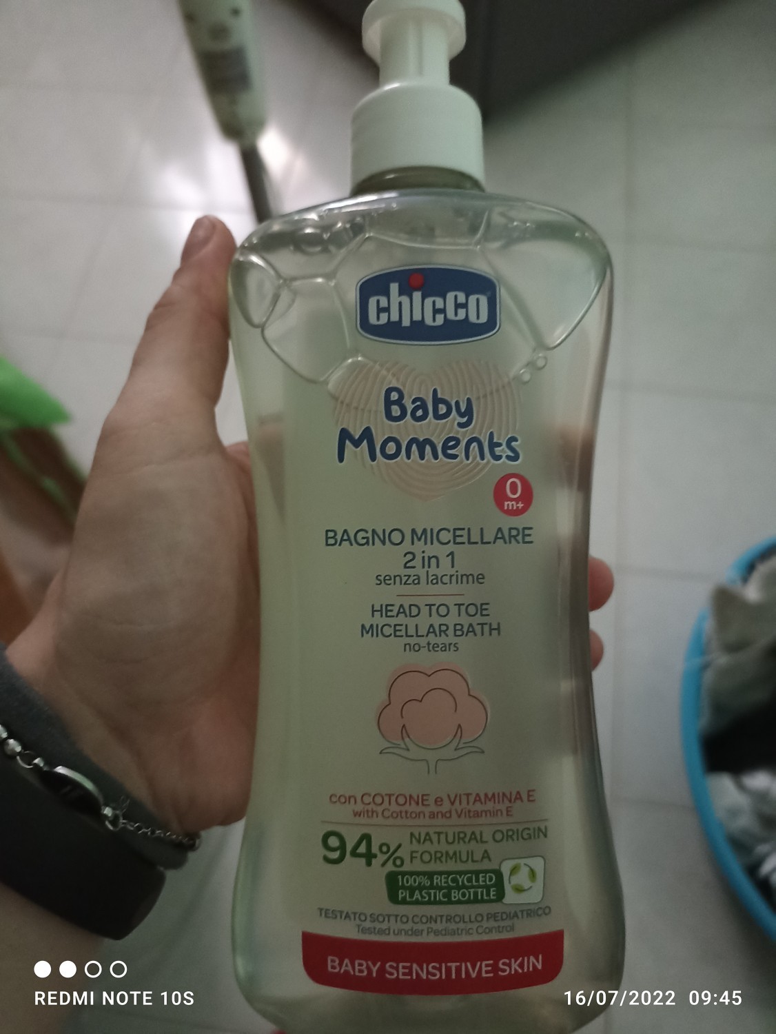 Detergente formulato con il 94% di ingredienti di origine naturale, ideale fin dalla nascita per l’igiene quotidiana del bambino e per nutrire la pelle dei più piccoli. La sua formula, leggermente profumata, contiene estratto di cotone, pantenolo (provitamina B5), vitamina E, che svolgono un'azione emolliente, idratante, nutritiva, calmante e protettiva, arricchita inoltre con olio di cotone.