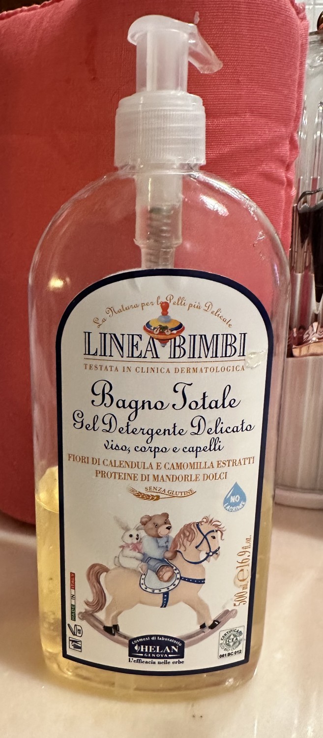 Regalato per la nascita del mio secondo figlio. Sinceramente non conoscevo la marca e il prodotto e dubitavo un pochino. Come ho iniziato ad utilizzarlo me ne sono innamorata per la sua profumazione e qualità. Ovviamente lo riacquisto! E’ un po’ costoso pero’. Lascia il bimbo profumatissimo