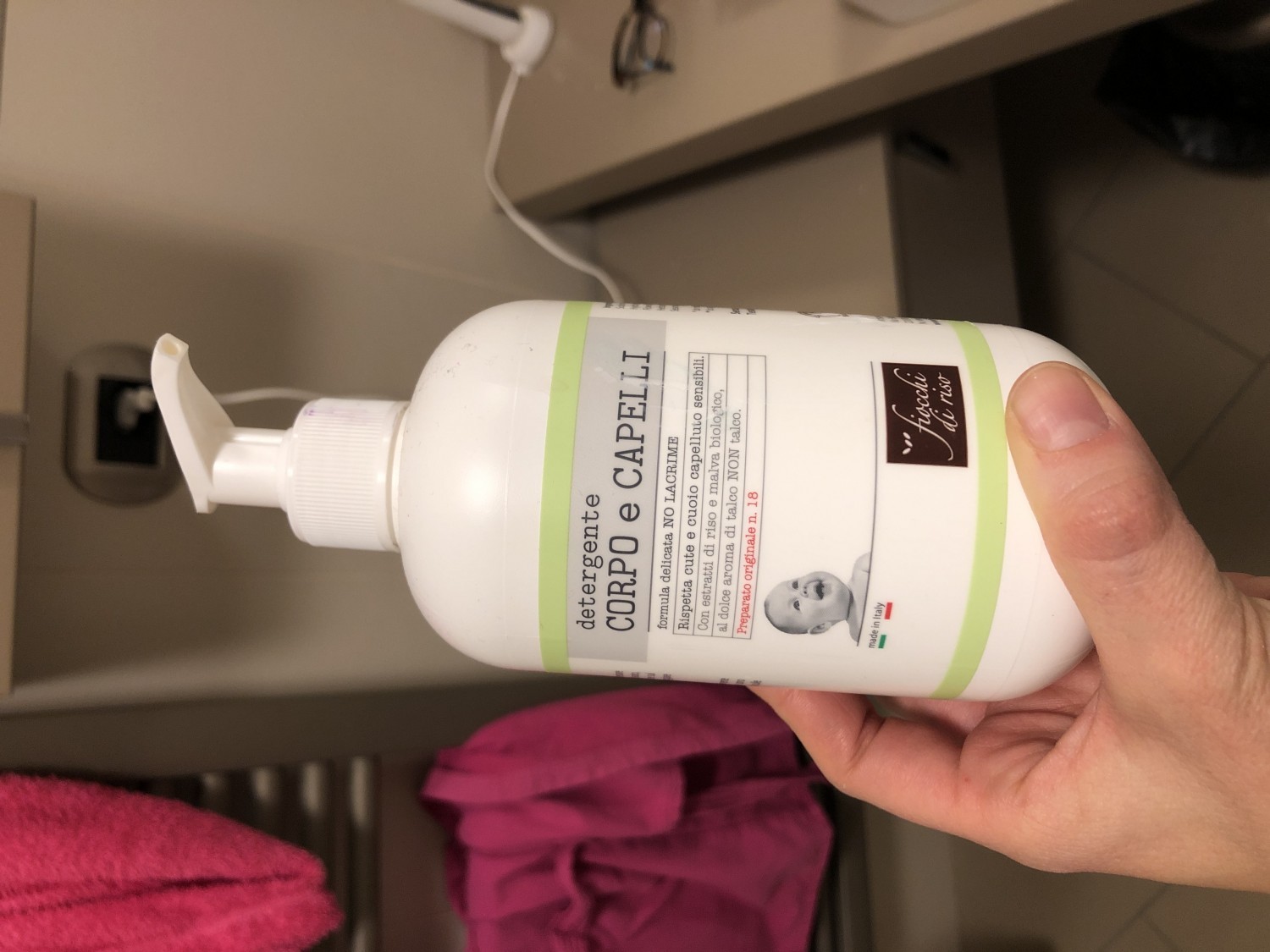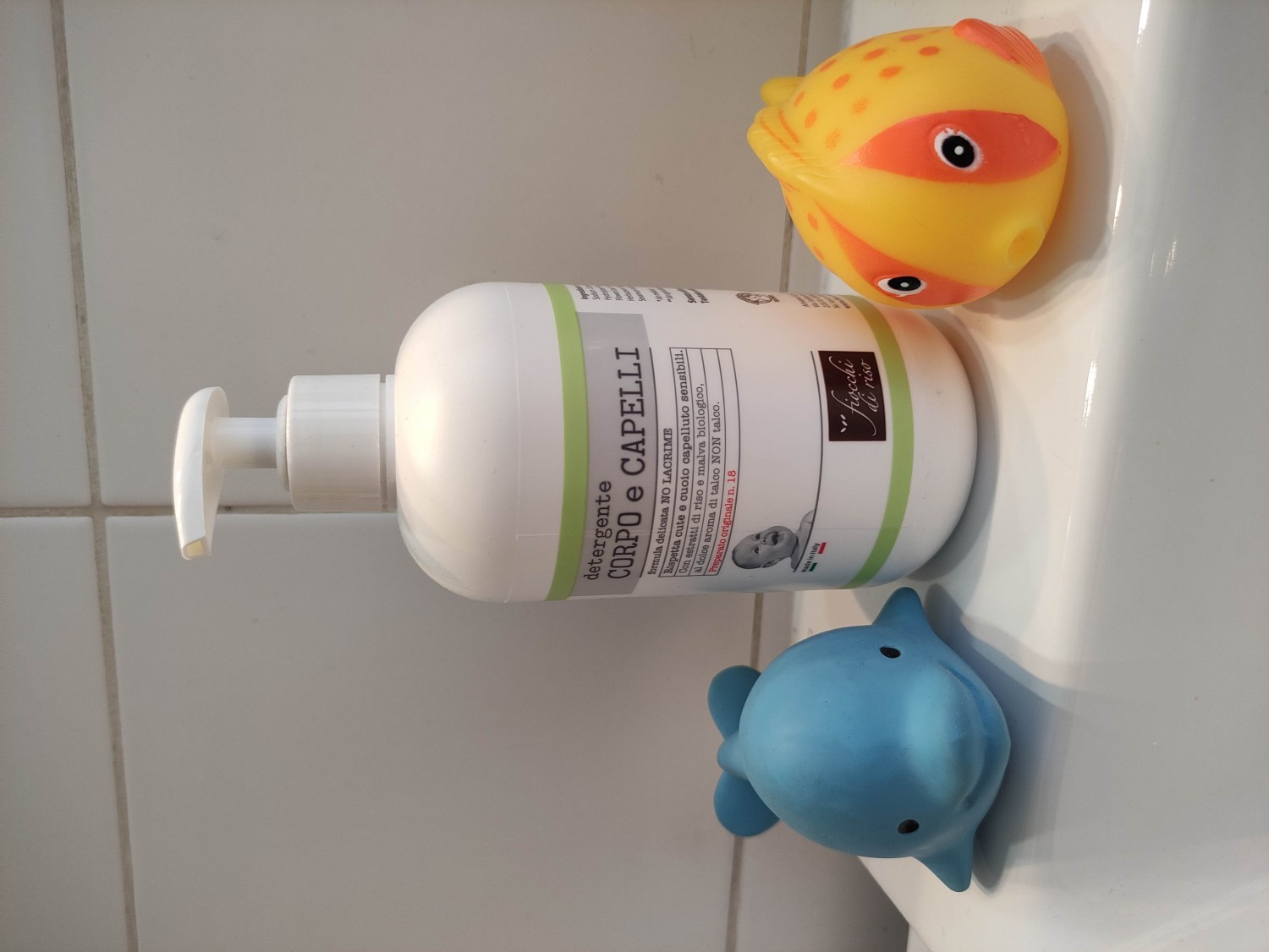 Contiene estratti di riso e malva biologico, al dolce aroma di talco NON talco, con formula delicata no lacrime, che riduce il rischio di lacrimazione in caso di contatto con gli occhi.