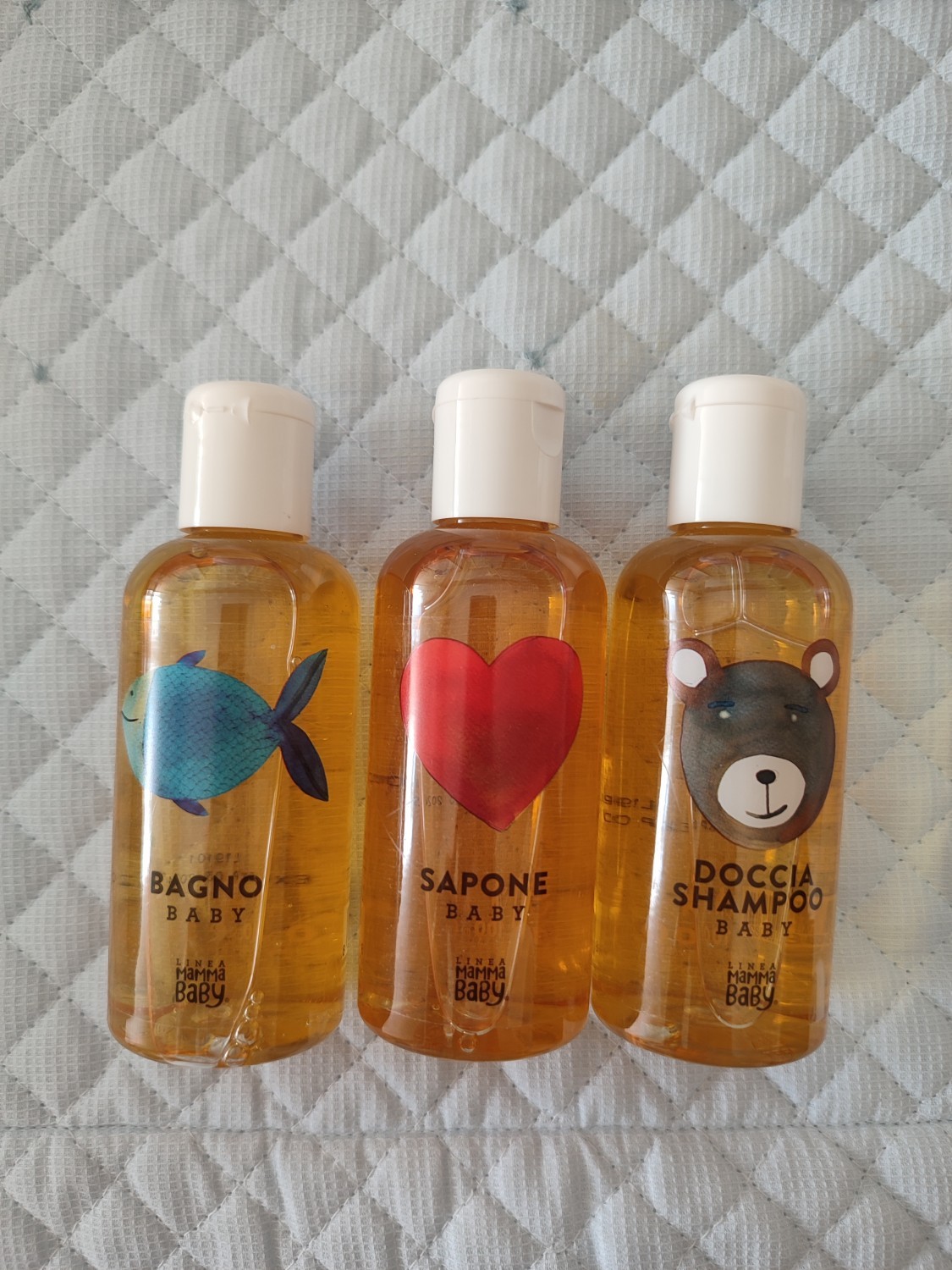Contiene Sapone Baby 100 ml, Bagno Baby 100 ml, Doccia Shampoo Baby 100 ml, Olio di Mandorle Dolci Baby 100 ml.