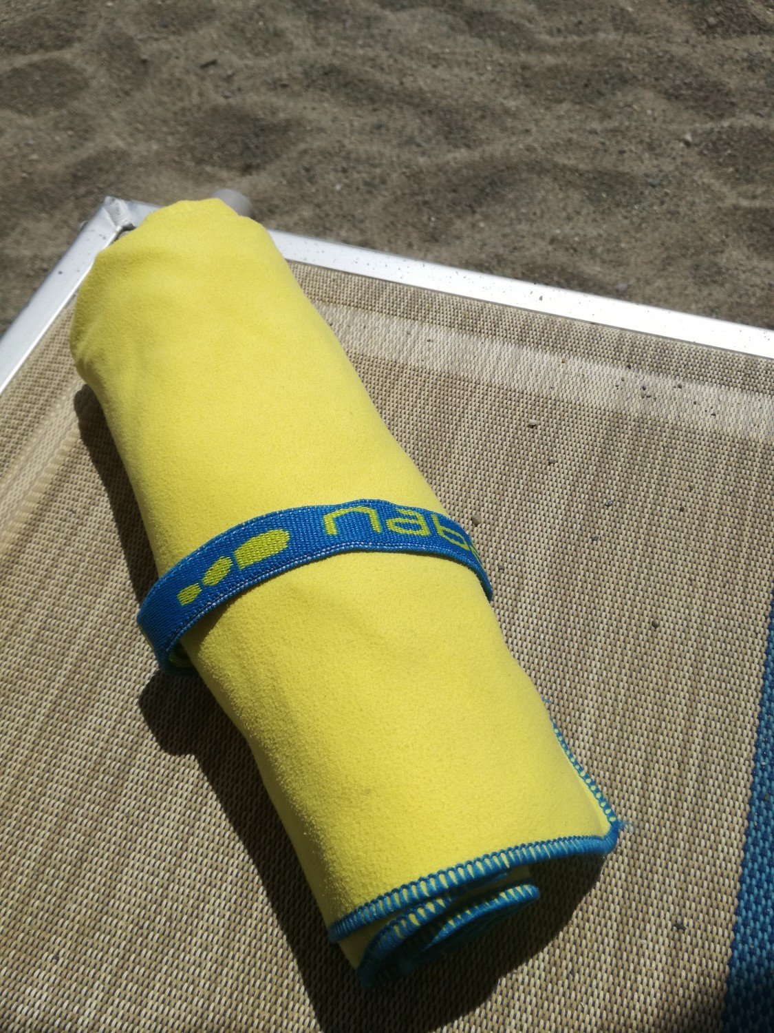 Sono letteralmente innamorata dei teli in micro fibra della decathlon, sono leggeri, compatti, occupano pochissimo spazio e si asciugano velocemente.