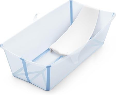 Set per il bagnetto Flexi Bath di Stokke che include vaschetta pieghevole Flexi Bath nella versione XL + supporto per neonati, per offrire comfort e sostegno fin dai primi bagnetti.