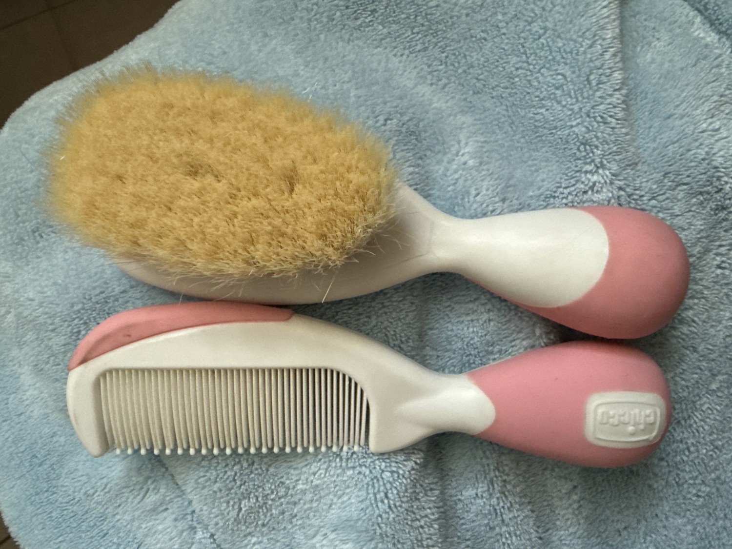 Ho comprato questo set pettine e spazzolina, ancora prima che il mio bimbo nascesse, ovviamente azzurri, adoro che ci siano rosa e azzurro, ma secondo me potrebbero farli anche di altri colori, io per esempio amo l'arancione, all'inizio usavo la spazzolina, poi ho usato pettine perché ha da sempre avuto un sacco di capelli.