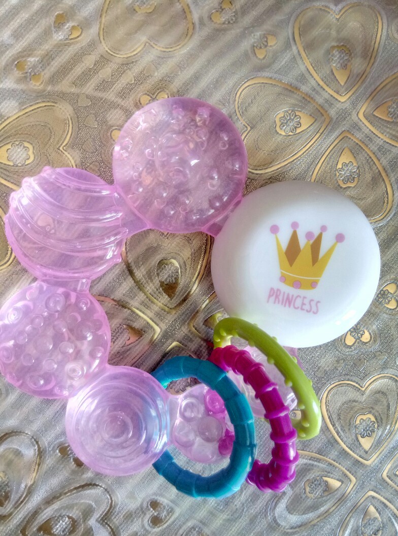 Ne ho diversi denttaruli a casa che uso attualmente come gioco ma questo anello lo trovo particolarmente utile: è facile d'afferrare grazie alla Sua forma ad anello, i cuscinetti sono in morbido silicone con acqua al suo interno e con 3 anelli in plastica colorati che fanno da sognalino volendo.