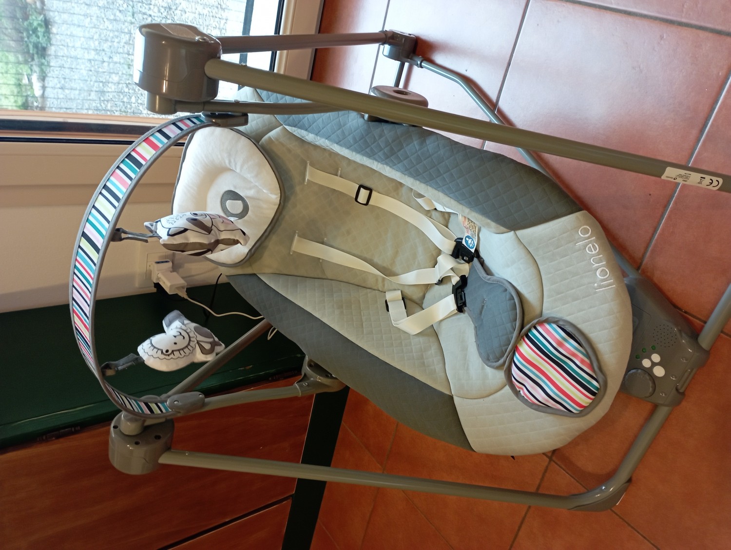 Sdraietta con funzione dondolo, che offre ai più piccoli ottime condizioni di riposo e divertimento. Con 5 velocità di oscillazione, cintura a 5 punti e timer che consente di programmare la disattivazione automatica della funzione dondolo dopo 15, 30, 45 minuti o 1 ora. Grazie ai cuscinetti antiscivolo, resta fissa a terra e non graffia il pavimento. Chiusa, è compatto e ideale anche in viaggio.