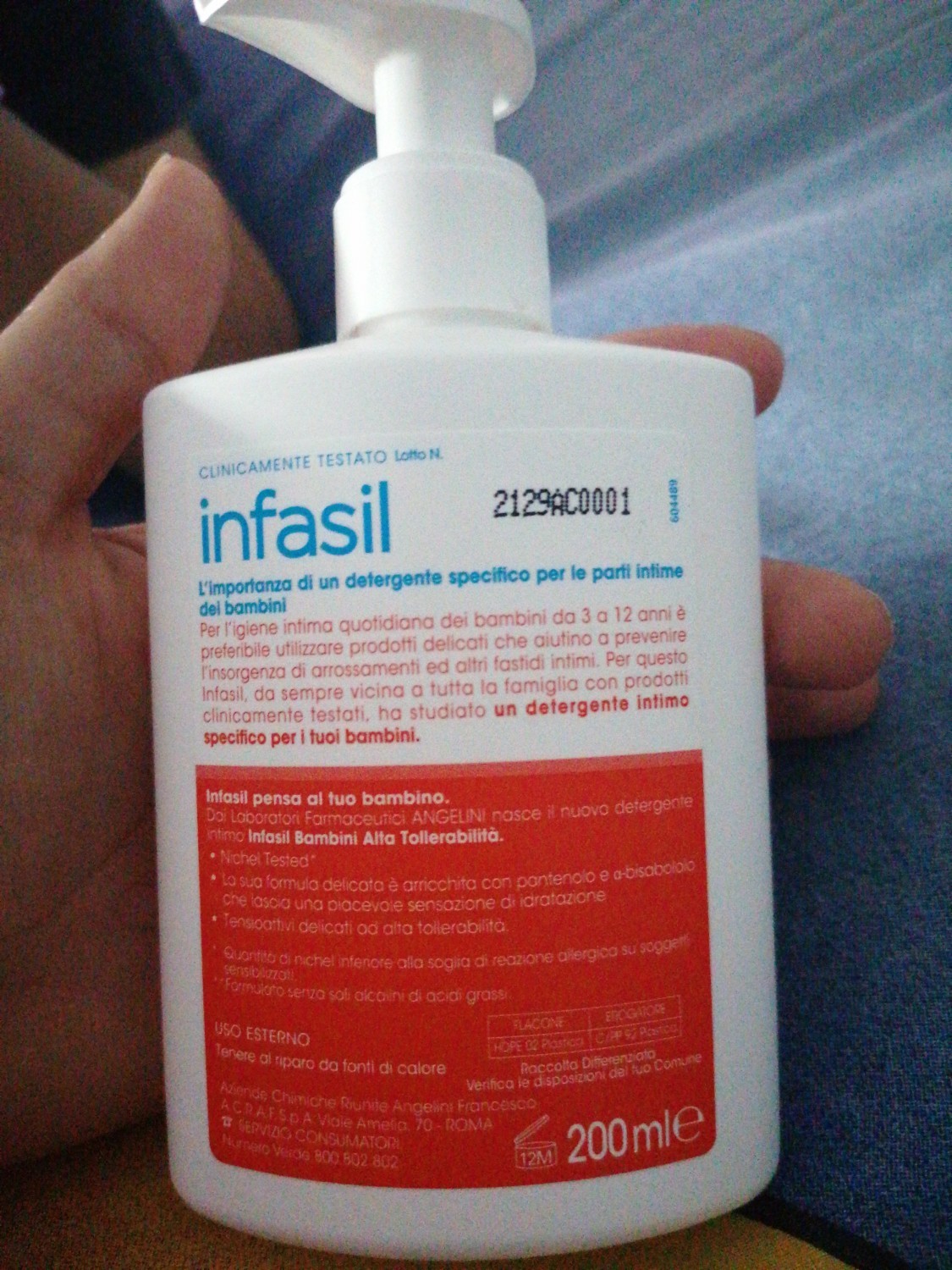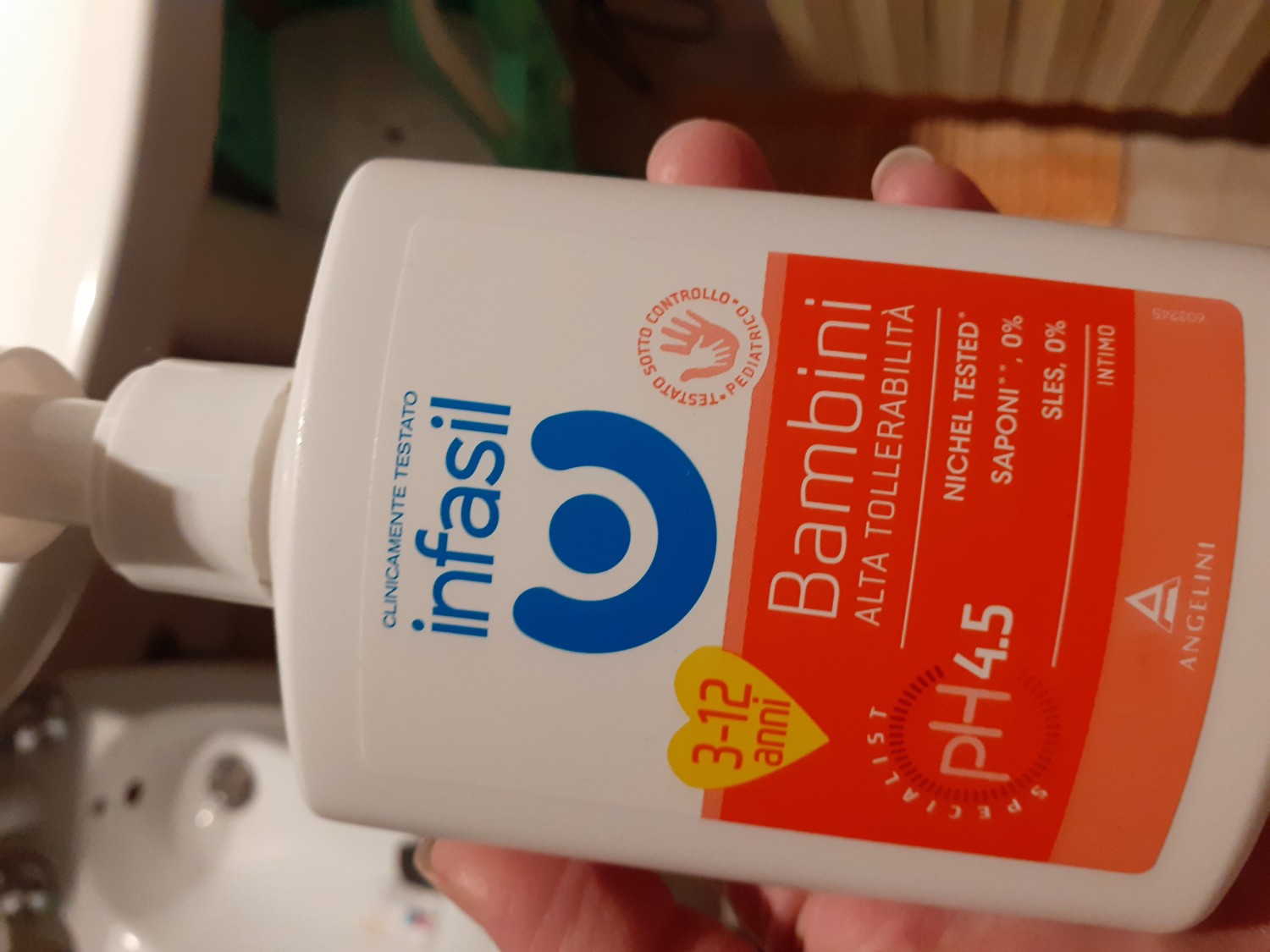 Detergente intimo dei Laboratori Farmaceutici Angelini, ad Alta Tollerabilità, pensato appositamente per i bambini 3-12 anni. Extra delicato, senza saponi, coloranti e SLES, contiene tensioattivi delicati e la sua formula è arricchita con pantenolo e α-bisabololo, che svolgono un'azione idratante. Poco schiumogeno, rispetta il pH ed è delicato sulla pelle.