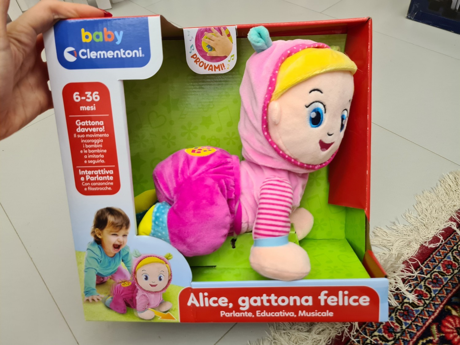 Abbiamo scelto Alice come primo regalo di natale per la mia piccola.Carina e colorata, dalla faccia sorridente che invoglia a seguirla ed ascoltare le sue canzoncine, ma sul mio pavimento non cammina