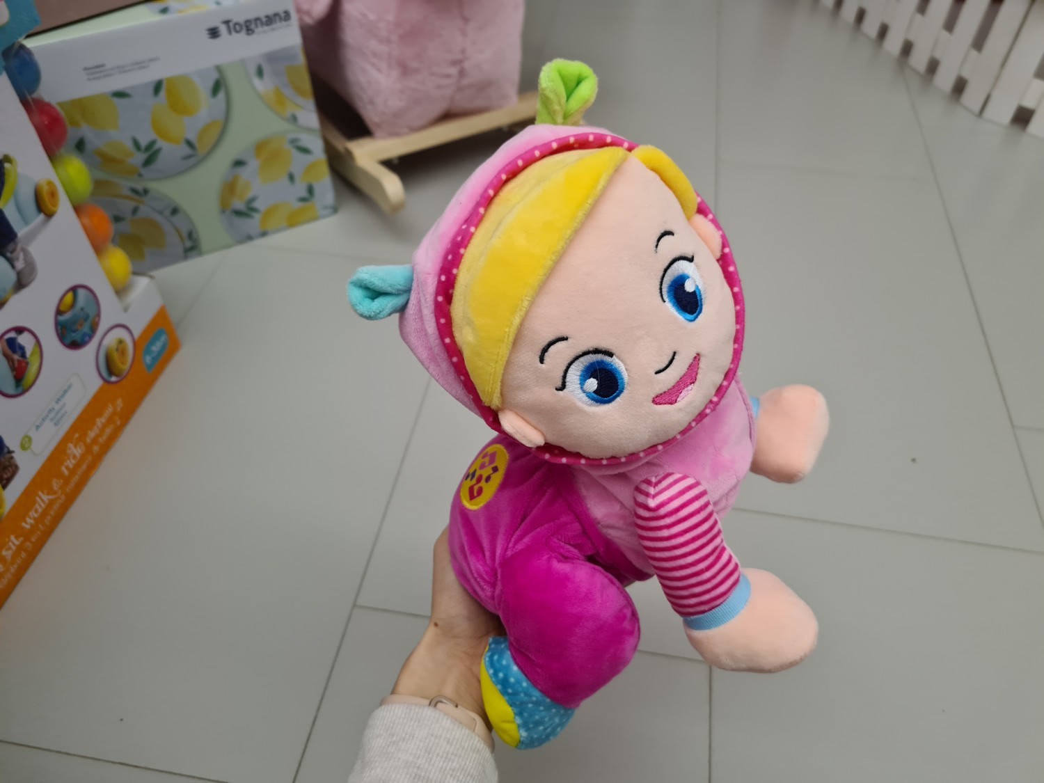 Una bellissima bambola acquistata a mia figlia quando ha iniziato a gattonare. E' stata spronata ad andarle dietro, gattona veramente! È morbida e dal visino dolce.
