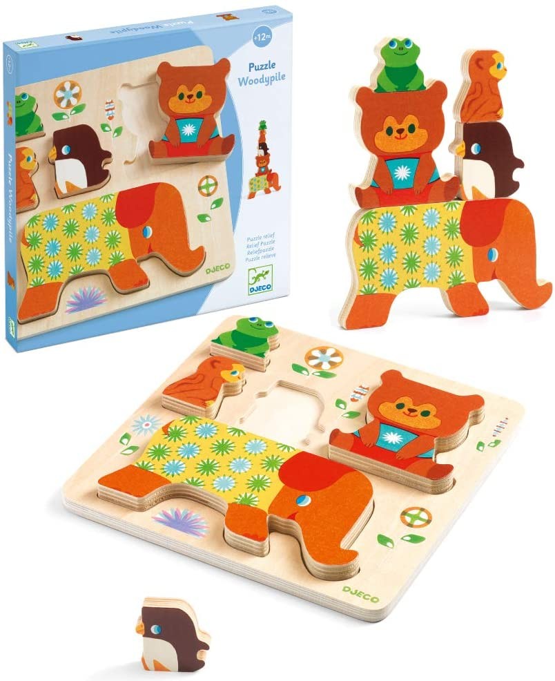 Puzzle in legno con 5 animali ad incastro, facile da maneggiare. Il bambino si divertirà ad inserire ogni animale nella forma corretta. Gli animali possono essere anche impilati. Stimola la concentrazione e contribuisce allo sviluppo della manualità.