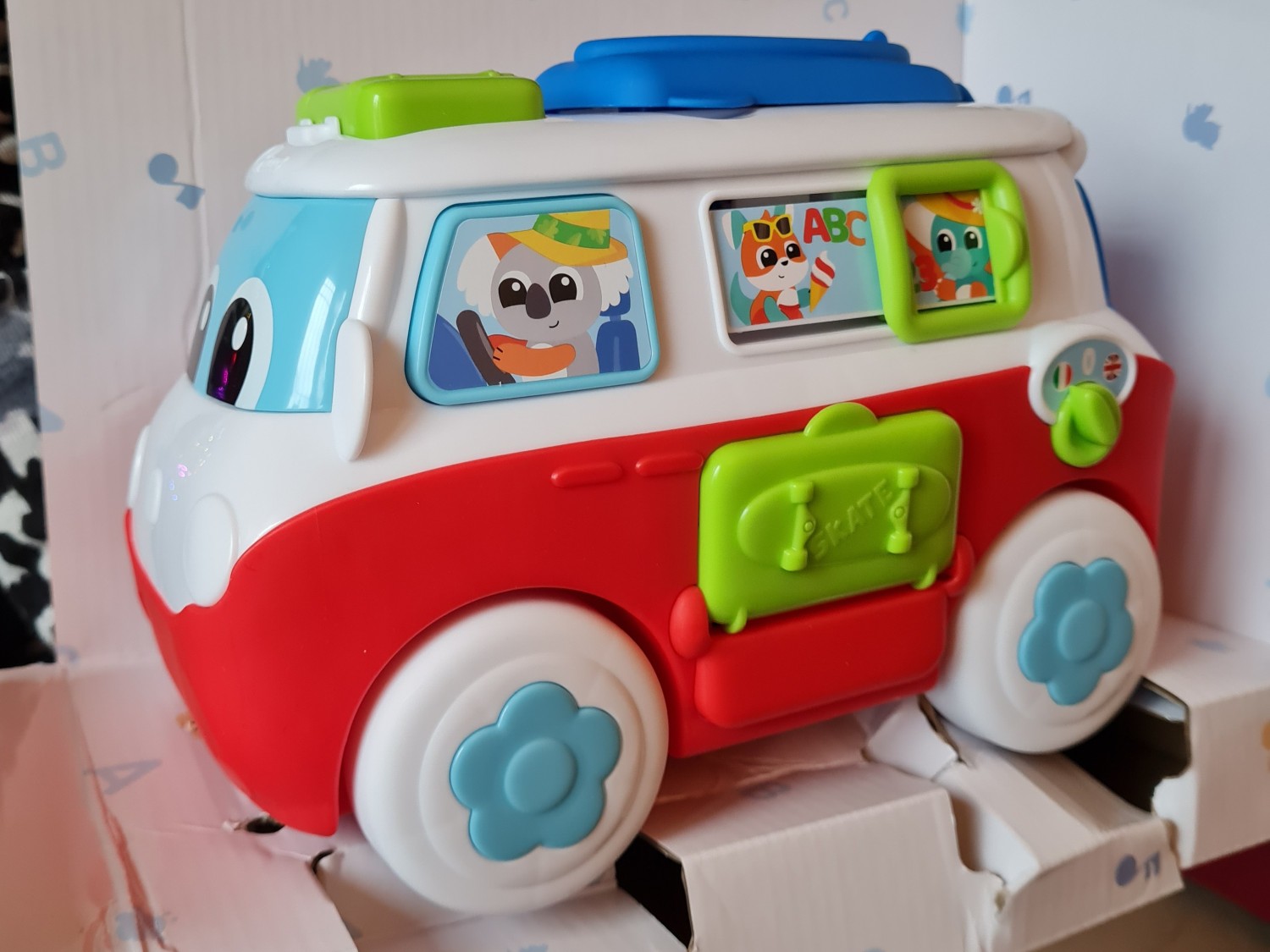 Dotato di 2 pulsanti elettronici - Koala e bagaglio - da premere per attivare melodie, canzoncine e dialoghi, è ricco anche di attività manuali: per scoprire i nuovi compagni di viaggio nascosti aprendo la tendina superiore e il baule posteriore; aprire la cucina per fingere di cucinare e scorrere la finestra per giocare con gli amici animali e ascoltare le canzoncine ABC e 123.