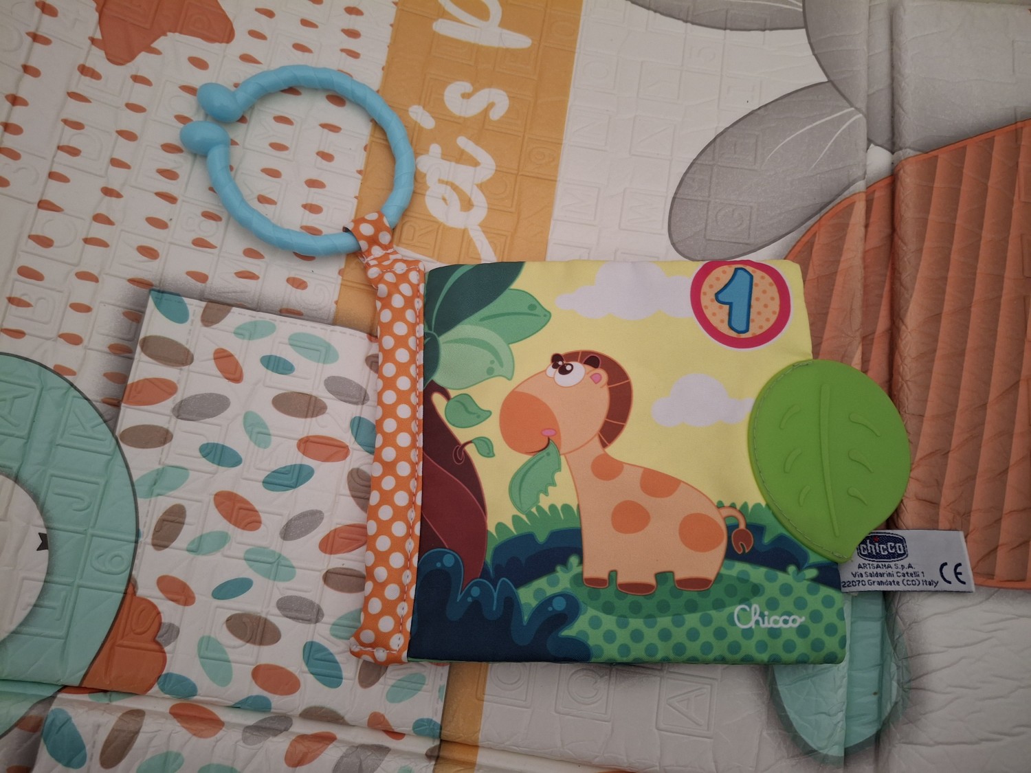 Mia cognata mi ha passato questo libricino da utilizzare insieme al mio bimbo adesso che inizia ad esplorare ciò che gli sta intorno. Infatti, durante il tummy time glielo metto a portata di mano e lui si diverte tantissimo a toccare le pagine, soprattutto quelle che "fanno rumore", e rimane incantato perché i colori sono super vivaci. Mi piace il fatto che sia dotato di un anello che mi permette di agganciarlo al seggiolino quando lo porto in giro - così si perde e almeno non si annoia. Quello che invece non mi è piaciuto affatto è la composizione, ovvero 100% poliestere, ovvero plastica.