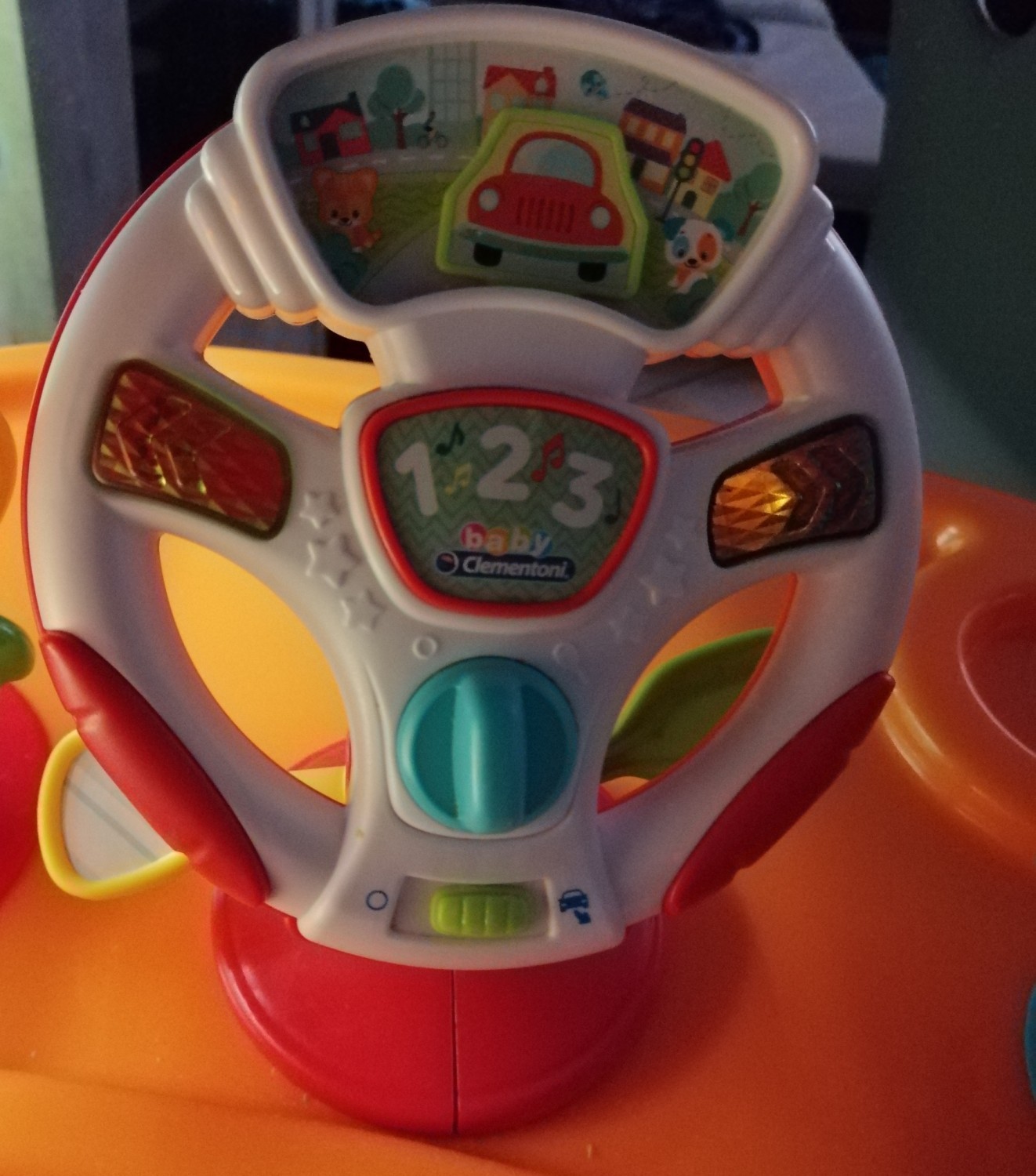 Gioco interattivo, parlante ed educativo: un volante che insegna numeri, filastrocche, versi degli animali e canzoncine, con luci led, effetti sonori e attività meccaniche. Girando il volante, la macchinina interattiva si sposta a destra e a sinistra lungo il percorso e attiva contenuti dedicati ad un’esperienza di guida reale. La chiave attiva 2 modalità di gioco, motore acceso o spento. Con specchietto e cambio che si muovono.