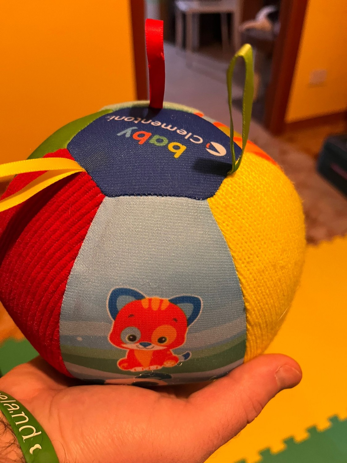 Mi mancava in casa una bella pallina, ho scelto questa perché morbida e colorata. Riproduce i suoni di qualche animale ed è davvero simpatica. Per ora che la mia bimba ha cinque mesi è ancora grande da prendere, qualche volta le scivola dalle mani, ma tra un mesetto sarà perfetta, nel frattempo si esercita nella presa. Si può lavare togliendo il sensore all' interno, prodotto consigliato per bambini da quattro mesi in su.