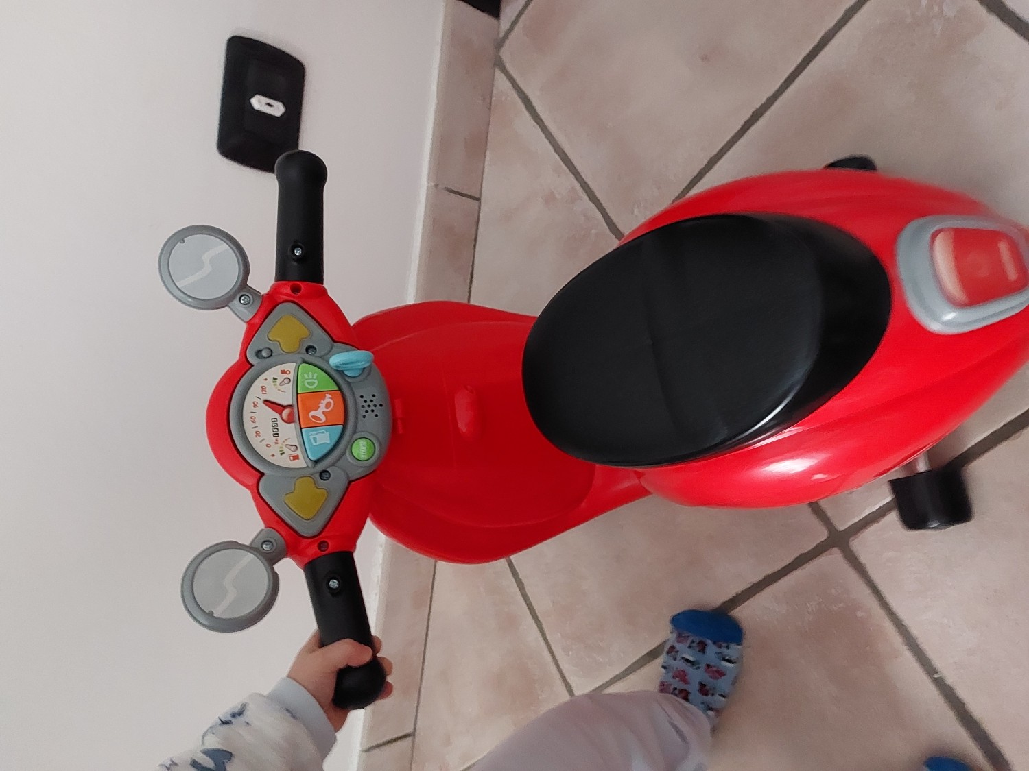 Adatta a bambini da 1 a 3 anni, la Vespa è dotata di ruote di supporto per i più piccoli, che possono essere rimosse una volta che saranno diventati guidatori esperti. Con rumori realistici del motore - che si avvia girando la chiave - luci e il suono del clacson.