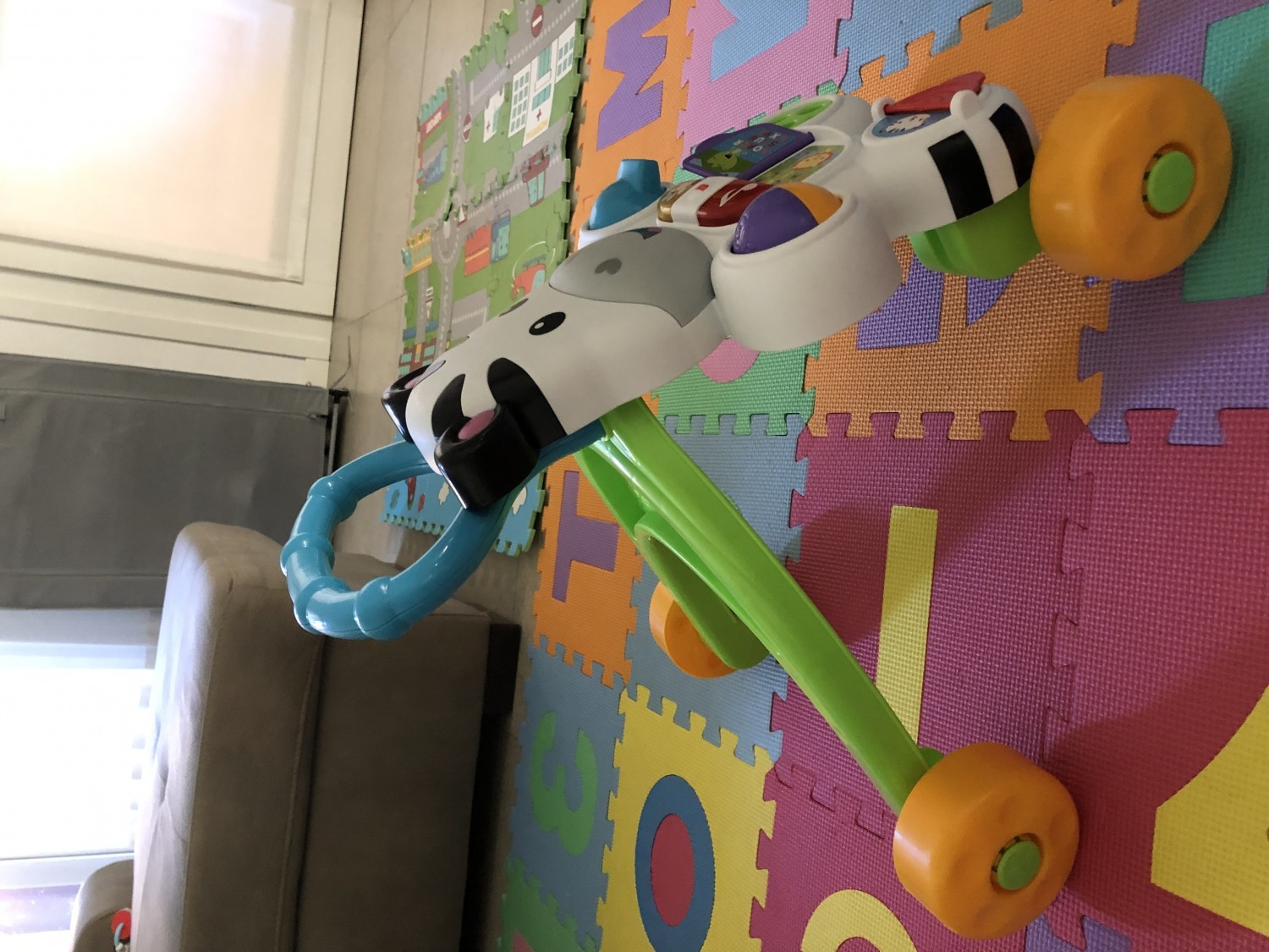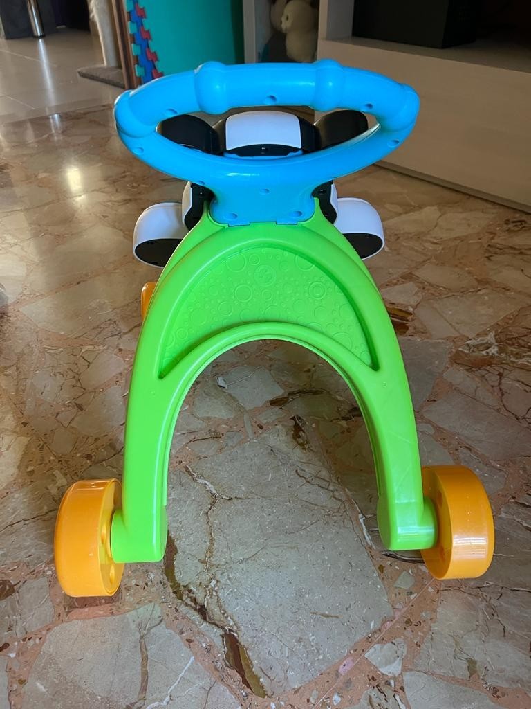 Mi hanno regalato questa zebra che ho usato inizialmente solo per i tasti interattivi, essendo che la bimba ancora non camminava. Se lo spinge troppo o ci si appoggia va indietro e la bambina rischia di dare una facciata avanti ogni volta. Inoltre quando inizia a camminare neanche serve perché scivola in avanti. Andrebbe usato quando il bambino già cammina.