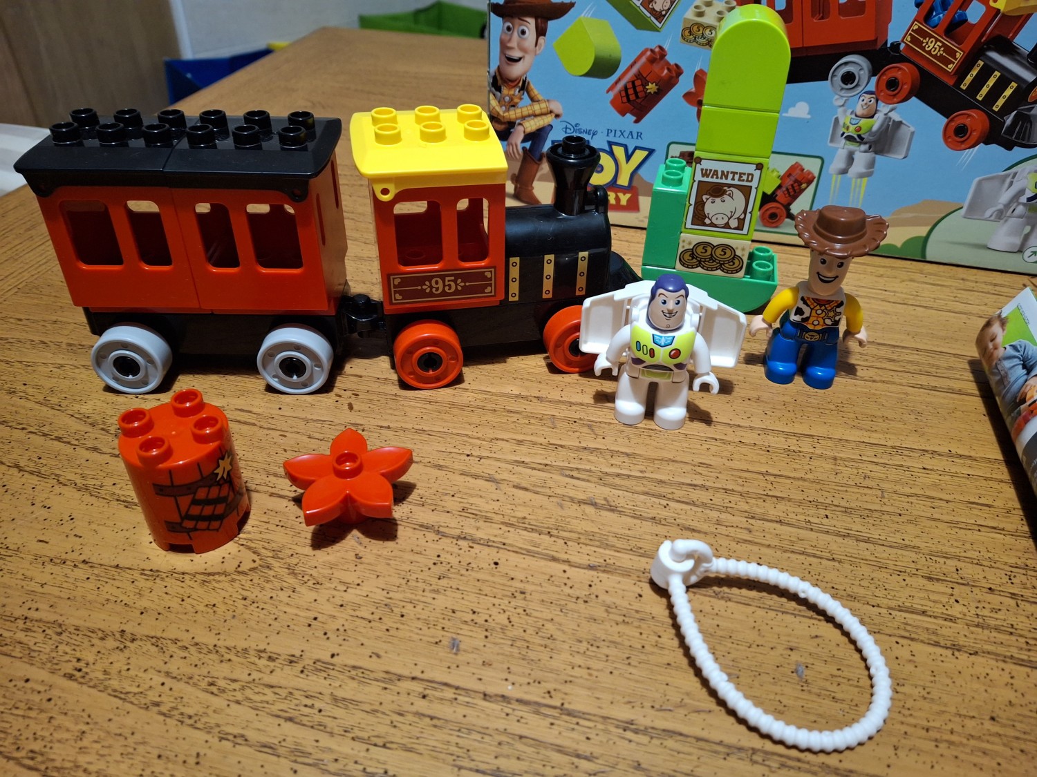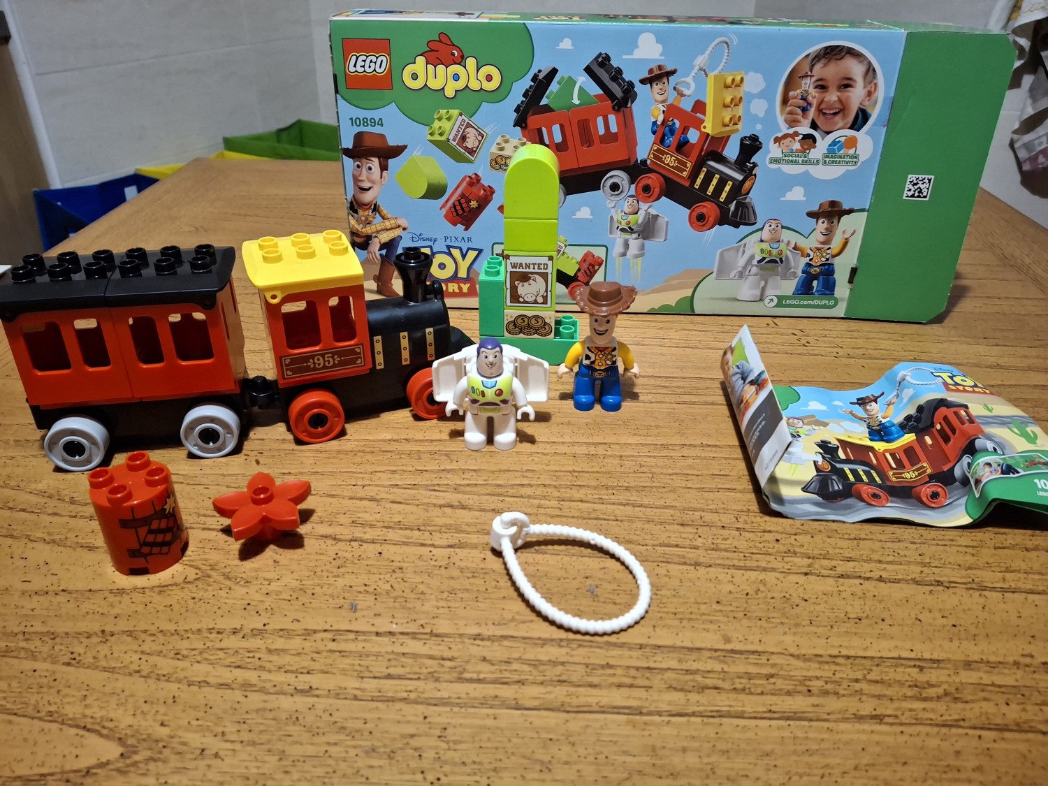 Set di costruzioni di 21 mattoncini Duplo Lego per giocare a costruire il treno a vapore ispirato al film Disney Pixar Toy Story. Include i due personaggi protagonisti del film: Woody e Buzz Lightyear con ali staccabili, che incoraggeranno l’immaginazione e il gioco di ruolo, oltre ad aiutare lo sviluppo delle capacità motorie complesse. Il set è facile da costruire e pensato per le mani dei bambini in età prescolare.