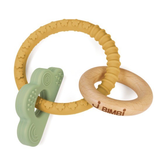 Il Massaggiagengive Bite&Play Charms di J Bimbi è ideale per alleviare i fastidi della dentizione stimolando lo sviluppo motorio. Facile da afferrare, è composto da 3 elementi in legno e silicone, di forme e consistenze diverse, con texture e rilievi che soddisfano l’istinto di mordere. Stimola la sensorialità del bambino favorendone lo sviluppo psicomotorio grazie ai colori vivaci, l’effetto sonaglino e la tridimensionalità.