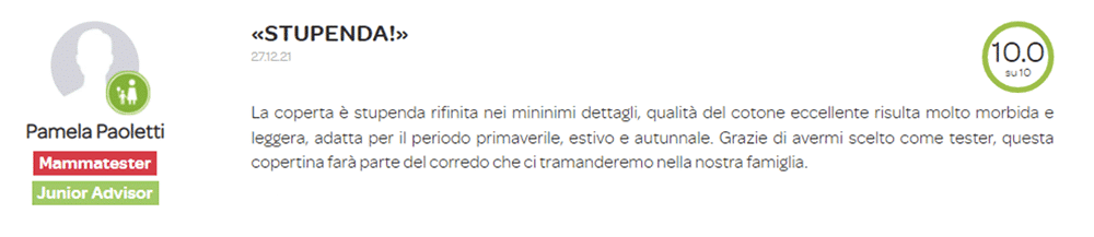 Se sarai tra coloro che verranno selezionate potresti ricevere un Kit composto da una Copertina Giardini & un Bavaglino Adriel entrambi di colore Beige.