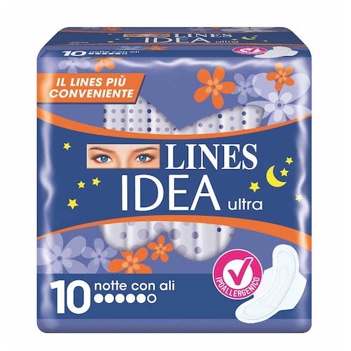 Assorbenti della linea Lines Ultra, con esclusivo cuore assorbente potenziato e design ancora più femminile, garantiscono assorbenza e protezione. Grazie a soli 3 mm di spessore e alle ali protettive sono molto confortevoli e offrono una sensazione di morbidezza. Ideali per la notte.
