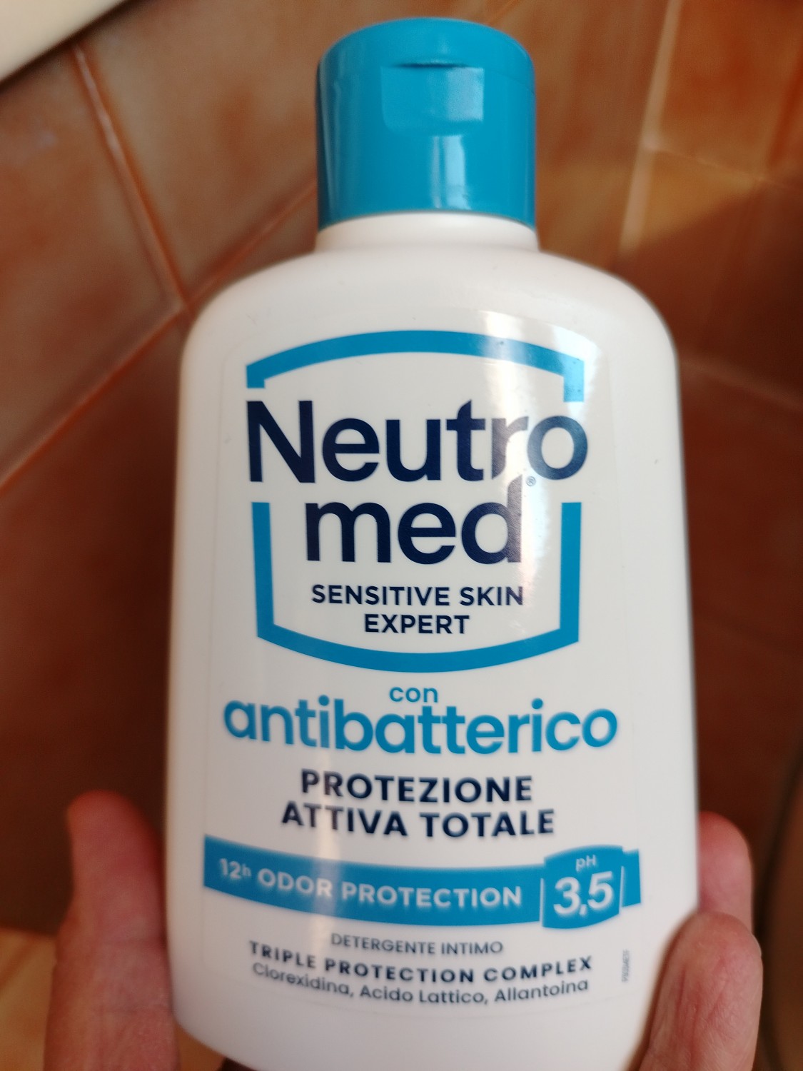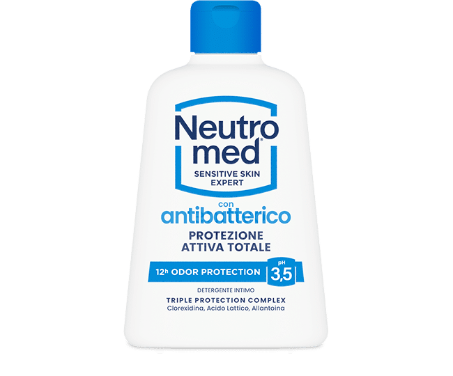 Il Detergente Intimo Antibatterico di Neutromed deterge delicatamente e previene la formazione dei batteri, garantendo una protezione attiva totale delle pelli sensibili. A pH 3,5, con formula a tripla protezione grazie a Clorexidina, con il suo principio attivo con proprietà antisettiche, Acido lattico che migliora l’idratazione e promuove la produzione di collagene e Allantoina, con proprietà lenitive e antinfiammatorie. 12 h odor protection.