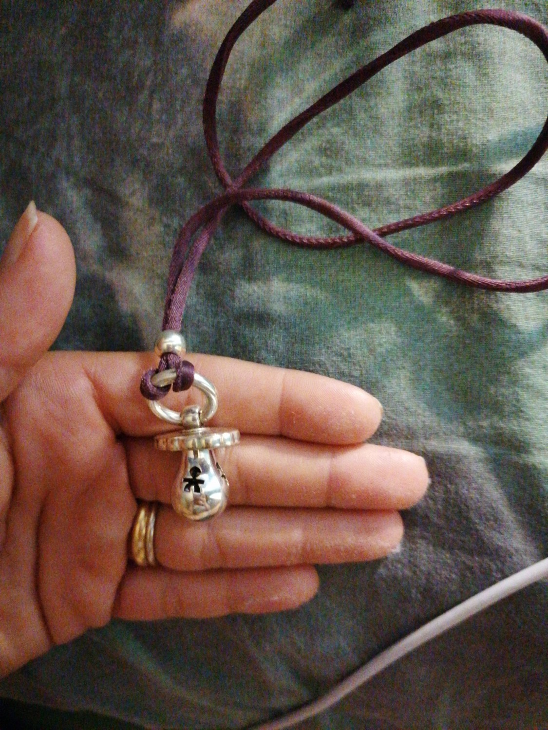 Regalato in gravidanza dal mio compagno. L'ho indossato tutti i giorni, 'ho trovato anche più elegante rispetto alla solita pallina! Lo riprenderei nuovamente. Ora avendo concluso la gravidanza lo sto utilizzando come portachiavi per la macchina.